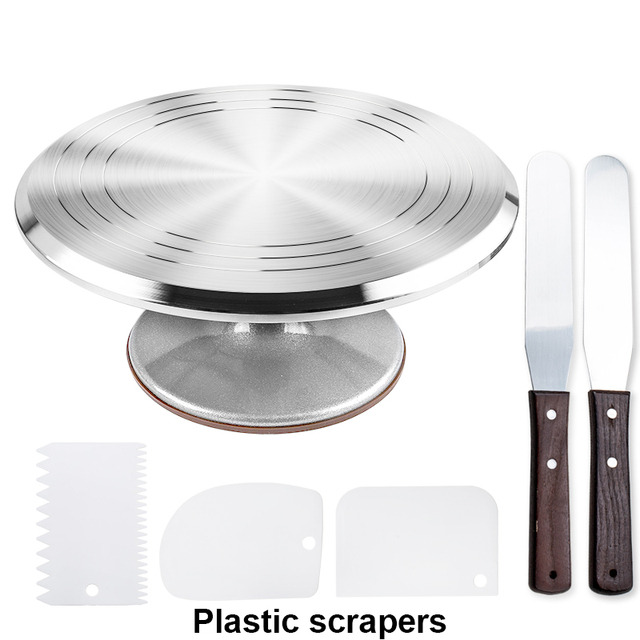 6Pcs/set Turntable Cake Decoration Accessories Set Rotating Cake Stand Tools Metal Stainless Steel Pastry Spatula Scraper