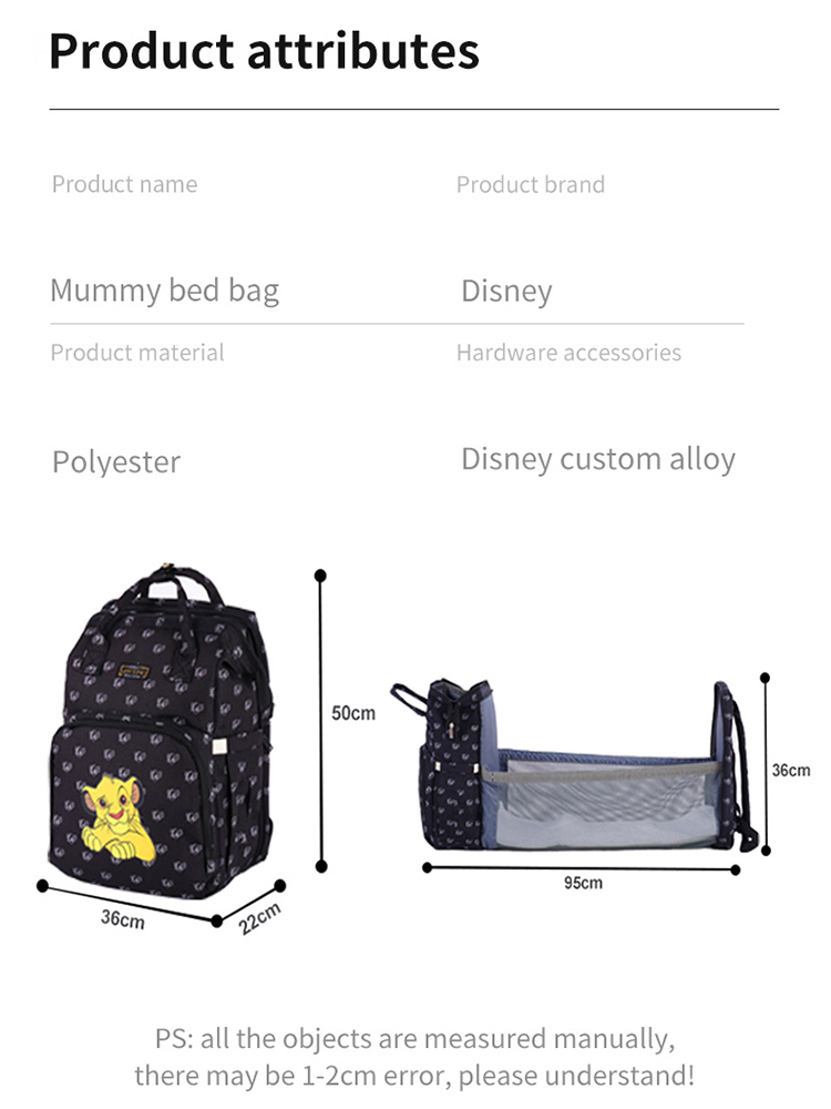 Disney Diaper Bag Backpack With Changing Bed Mommy Baby Stroller Bag Large Capacity Nappy Maternity Care Women Bag The King Lion