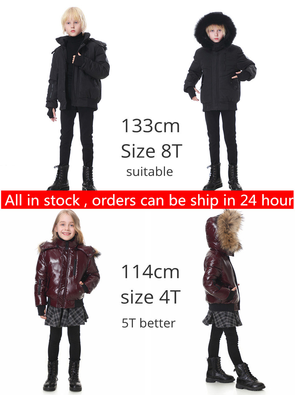 New 2023 super warm filling white duck down winter coats for kids- Teenager outdoor thicken jackets nature fur waterproof fabric
