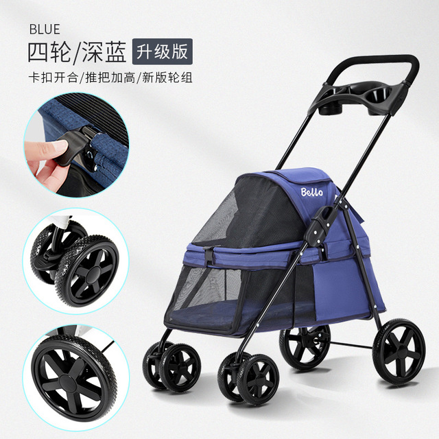 Pet Stroller Lightweight Dog Cat Cart Four-wheel Shock Absorption Folding Dog Transport Cart Breathable Stroller Outdoor