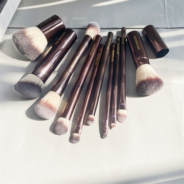 Hourglass Makeup Brushes Set – 10-pcs Powder Blush Eyeshadow Crease Concealer eyeLiner Smudger Metal Handle Brushes