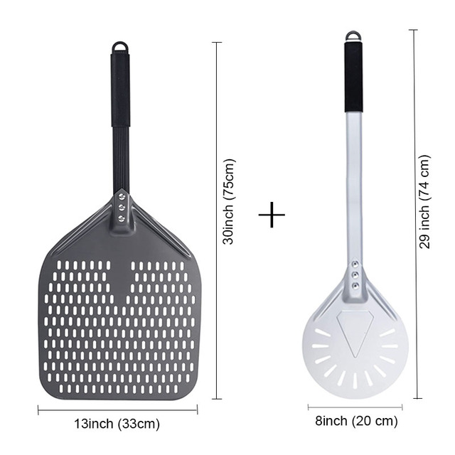 SHANGPEIXUAN 16/14/13/12 Inch Perforated Pizza Peel Rectangular Pizza Shovel Aluminum Hard Coating Pizza Peel Paddle Short Tool – 13inch and 8inch Set
