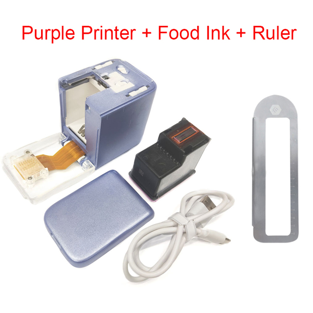 Mini Handheld Mbrush Food Printer Portable Inkjet Pen Print Custom DIY Coffee Printing Food Printer with Edible Food Ink – Purple add Ruler