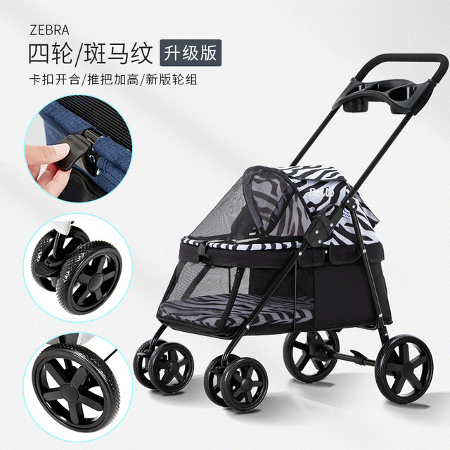 Pet Stroller Lightweight Dog Cat Cart Four-wheel Shock Absorption Folding Dog Transport Cart Breathable Stroller Outdoor