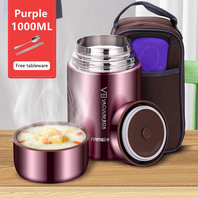 Food Thermal Jar Soup Gruel 316 Stainless Steel Vacuum Lunch Box Office Insulated Thermos Containers Spoon Bag 600/800/1000ML