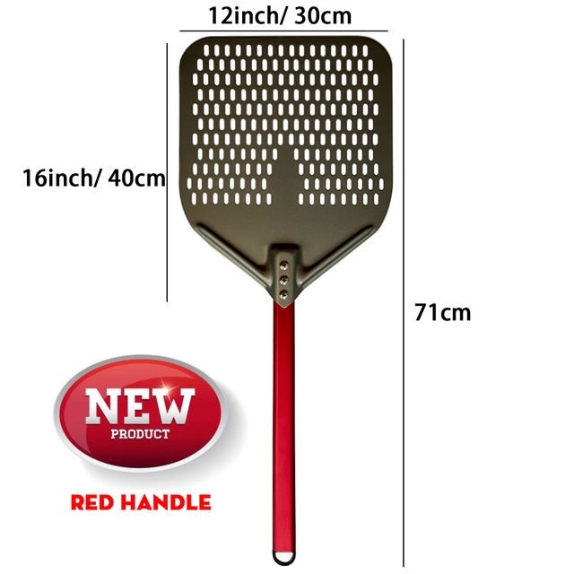 SHANGPEIXUAN 16/14/13/12 Inch Perforated Pizza Peel Rectangular Pizza Shovel Aluminum Hard Coating Pizza Peel Paddle Short Tool – Red Handle 12inch