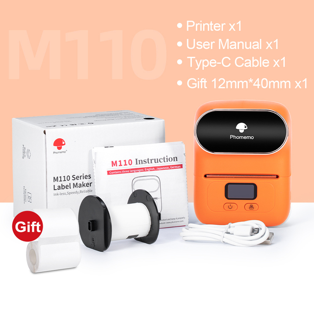 Phomemo M110 Mini Portable Thermal Label Printer Self-Adhesive Label Maker bluetooth Pocket Sticker Printer 53mm for School Home