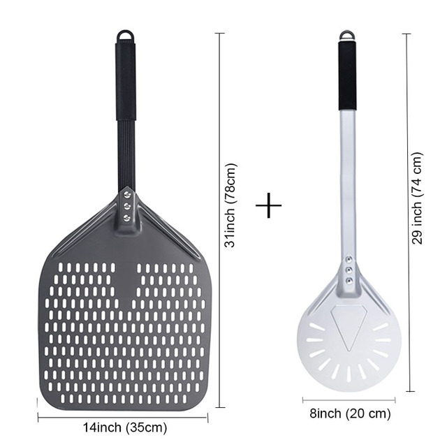 SHANGPEIXUAN 16/14/13/12 Inch Perforated Pizza Peel Rectangular Pizza Shovel Aluminum Hard Coating Pizza Peel Paddle Short Tool – 14inch and 8inch Set