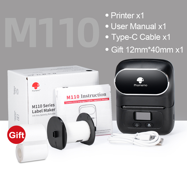 Phomemo M110 Mini Portable Thermal Label Printer Self-Adhesive Label Maker bluetooth Pocket Sticker Printer 53mm for School Home