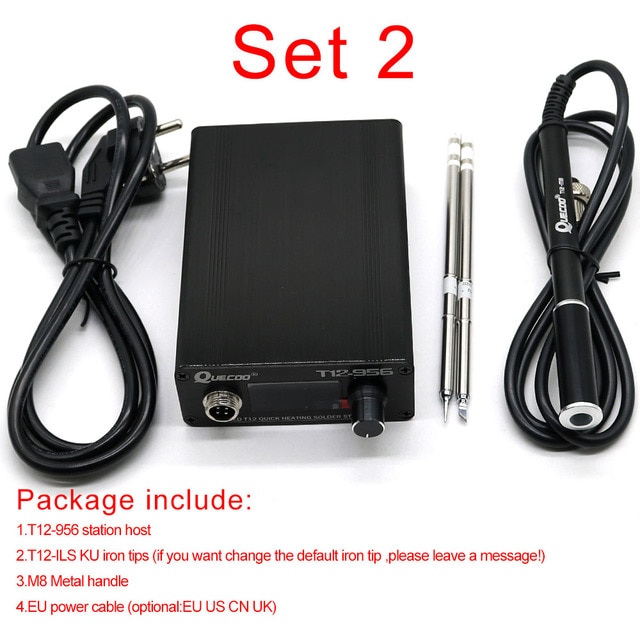QUECOO T12-956 Soldering Digital Station Electronic Soldering iron OLED 1.3inch with Black M8 handle and T12 soldering iron tips
